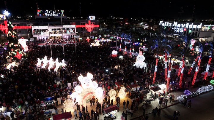 “Estas fiestas son una oportunidad para disfrutar con la familia, ser fraternos y mantener viva la esperanza por una vida mejor”, expresó el mandatario frente a las familias que se dieron cita en la Plaza de la Reforma.