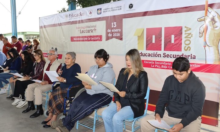 Baja California Sur se sumó a la conmemoración de los primeros 100 años de la educación secundaria en México mediante un maratón estatal de lectura bajo el lema “Un siglo de historias, aprendizajes y generaciones”, que se realizó este martes de manera simultánea en todas las entidades federativas, informó Ofelia Ochoa Romero, directora de Educación Secundaria de la Secretaría de Educación Pública (SEP).